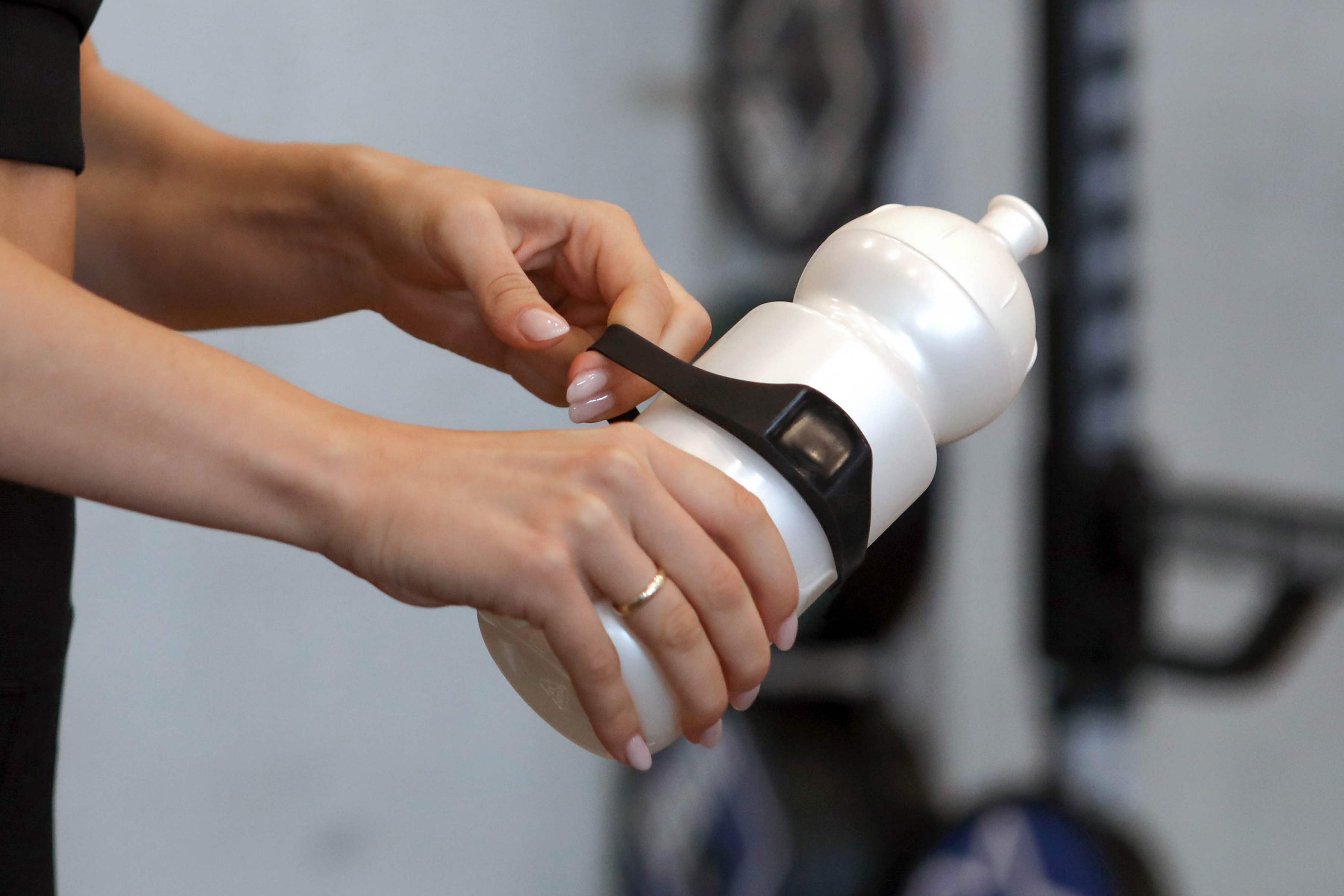Grâce au Gymbutler, vous pouvez facilement fixer une bouteille sur des surfaces métalliques plates telles que les châssis de fauteuils roulants, les scooters, les tables, les équipements sportifs, etc.