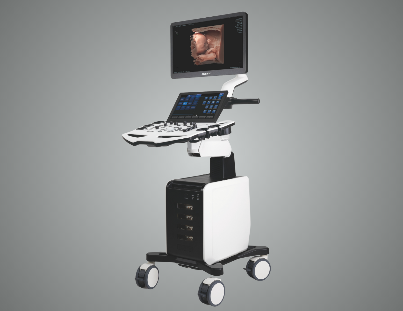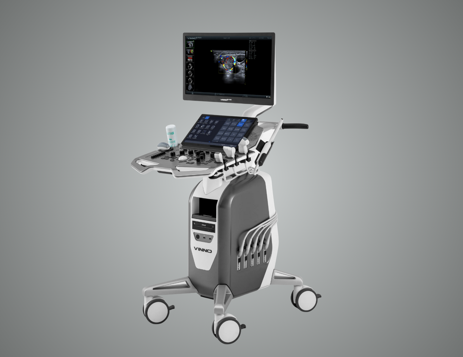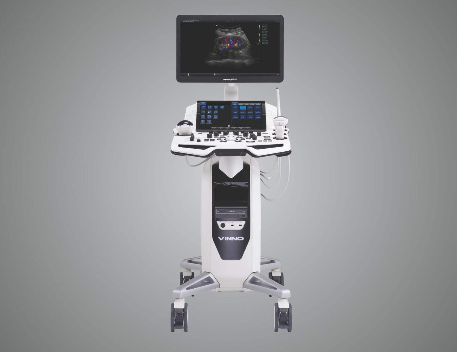 - Prend en charge une large gamme de sondes, des sondes linéaires aux sondes convexes et phased array (à reseau phasé).